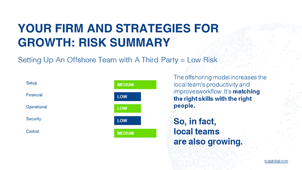 Offshoring is not a risky proposition as you might think. We at The Outsourced Accountant have worked with hundreds of accounting and they will tell you that the rewards outweigh the risks many times over.