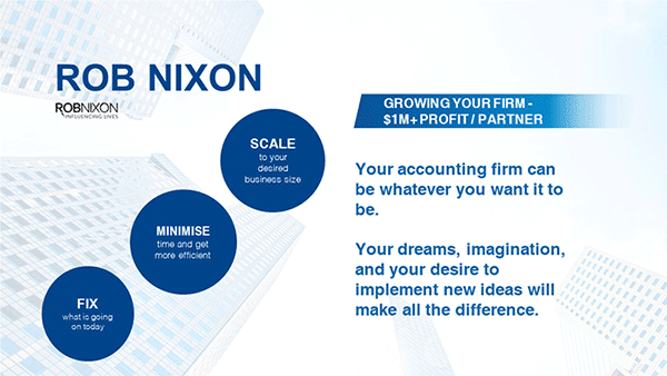 The pace by which leading-edge technology and best practices are changing is staggering. Rob Nixon, success mentor, coach, and facilitator to hundreds of accounting firms worldwide, knows this all too well. To grow your accounting business, he says that you need to do three things: