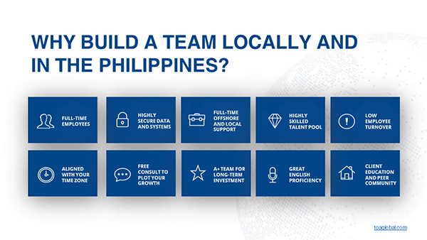 There are 10 clear-cut advantages of building your local team and a team in the Philippines: