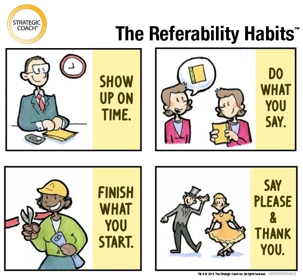 The 4 Referability Habits are a concept created by Dan Sullivan from Strategic Coach. They are: