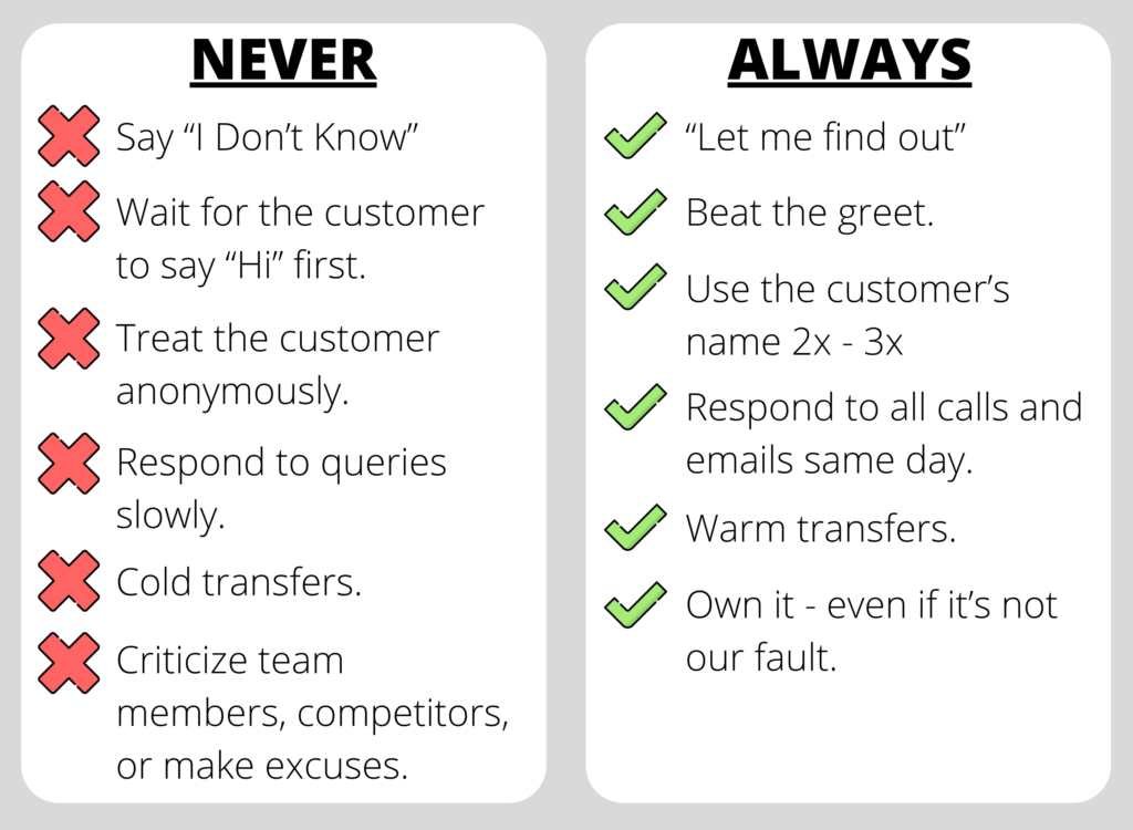 2. Create A Customer Service Vision and an ALWAYS/NEVER List.
