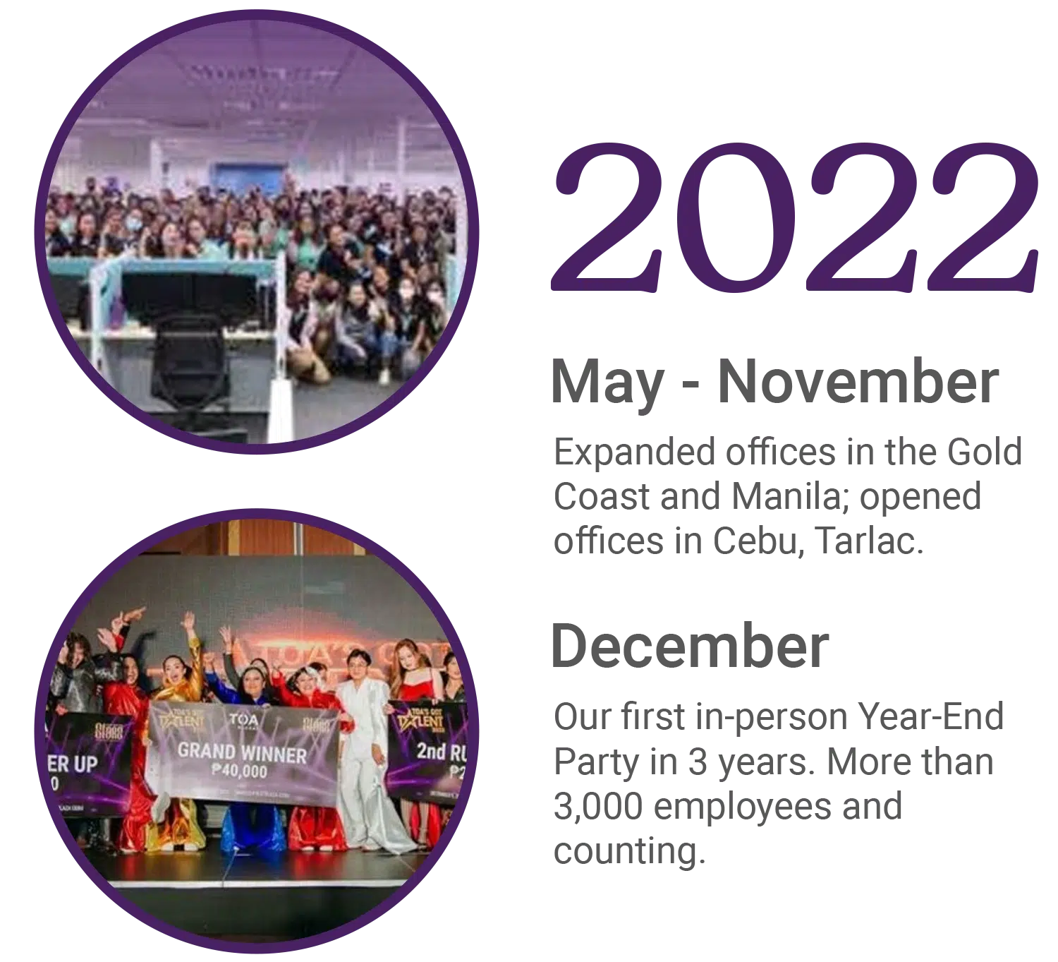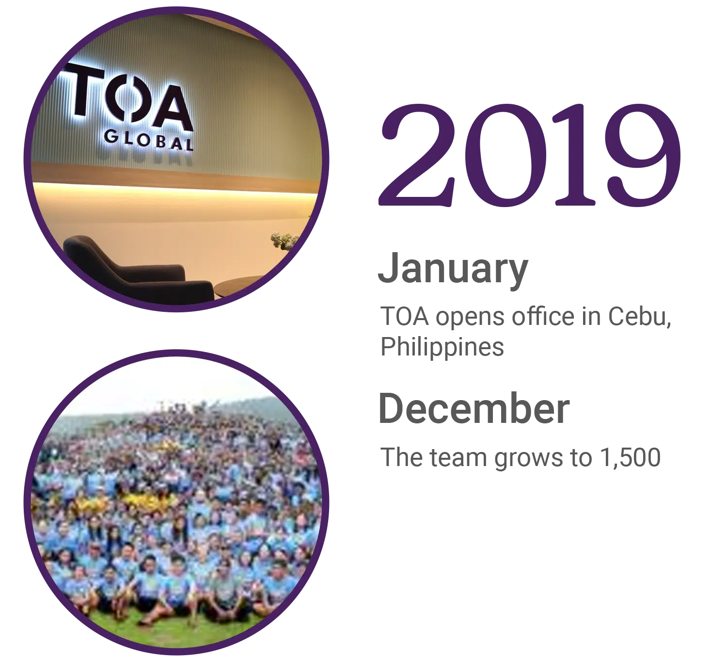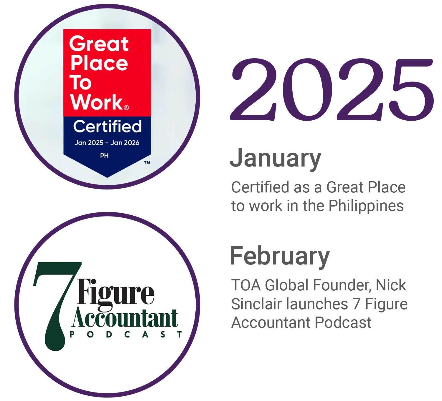 Our growing global talent collective has over 4,254 team members in the Philippines, supporting 1,187+ accounting and bookkeeping firms across the globe. TOA Global is now one of the Philippines’ largest employers in the accounting industry, based on a comparison of staff numbers at the top 5 Philippine accounting firms.